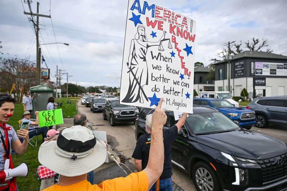 Demonstrators of all ages rally on Jefferson Highway amid nationwide outcry over federal immigration raids