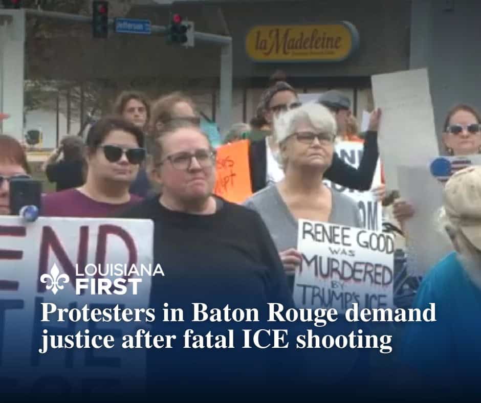 BATON ROUGE, La. (Louisiana First) — Demonstrators gathered Saturday, calling for justice after the fatal shooting of Renee Good by an ICE officer in Minnesota, a case that has sparked protests and renewed debate over federal law enforcement practices across the country.